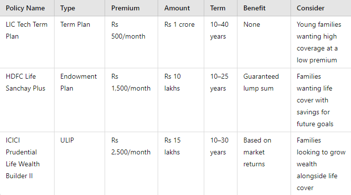 Solution: The good news is that securing the right life insurance doesn’t have to be complicated. Here’s a look at the best life insurance policies for young families in 2024. We’ve broken it down by different types of policies—term plans, endowment plans, and ULIPs—so you can choose the one that best suits your family’s needs.